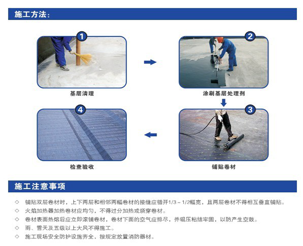 ◆覆面材料適應(yīng)性廣:卷材表面材料包括聚乙烯膜(PE)膜、細(xì)砂(S)、礦物粒料(M),還可根據(jù)客戶要求生產(chǎn)其它表面材料的卷材。